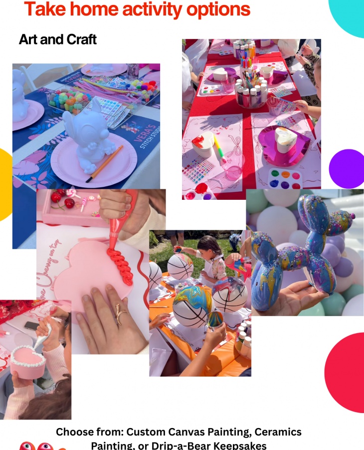 From custom canvas painting and ceramics painting to drip-a-bear keepsakes, every child creates a one-of-a-kind masterpiece to take home.