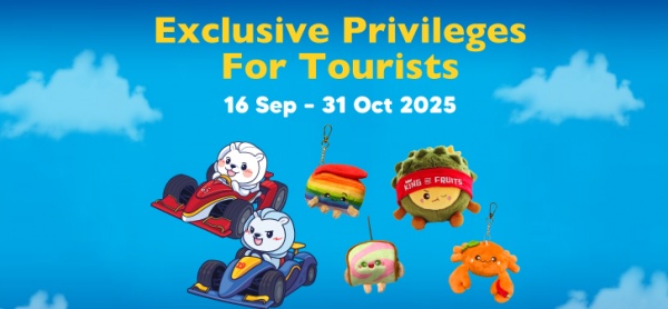 Soak in the adrenaline of the Singapore Grand Prix 2025 with Mr Merlion & Friends! Receive a Mr Merlion Keychain and a Race Plush Car with a minimum spend of S$80 in the mall (maximum 3 same-day combined receipts from qualifying stores). Limited to 1 redemption per tourist. Colour varies for the Mr Merlion Keychain. Present your passport or *hotel key card and receipts at the Customer Service Counter to redeem the gift, while stocks last.